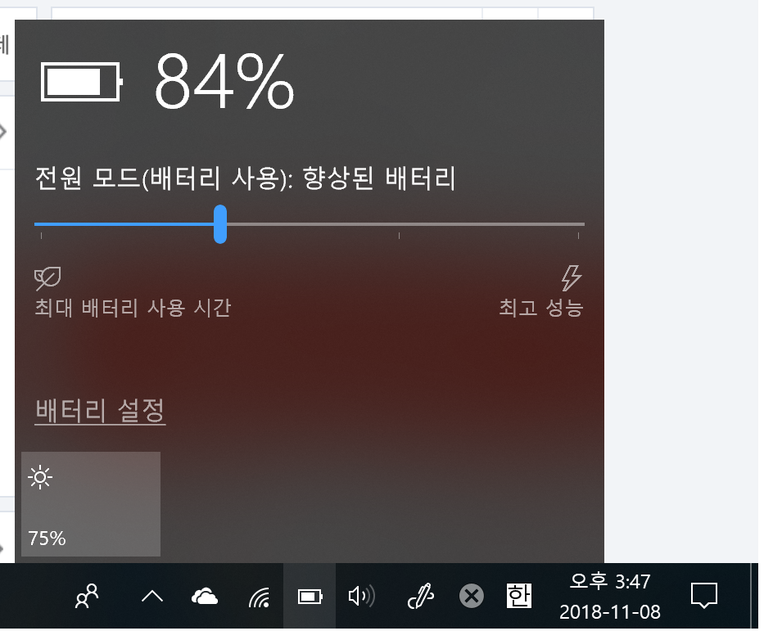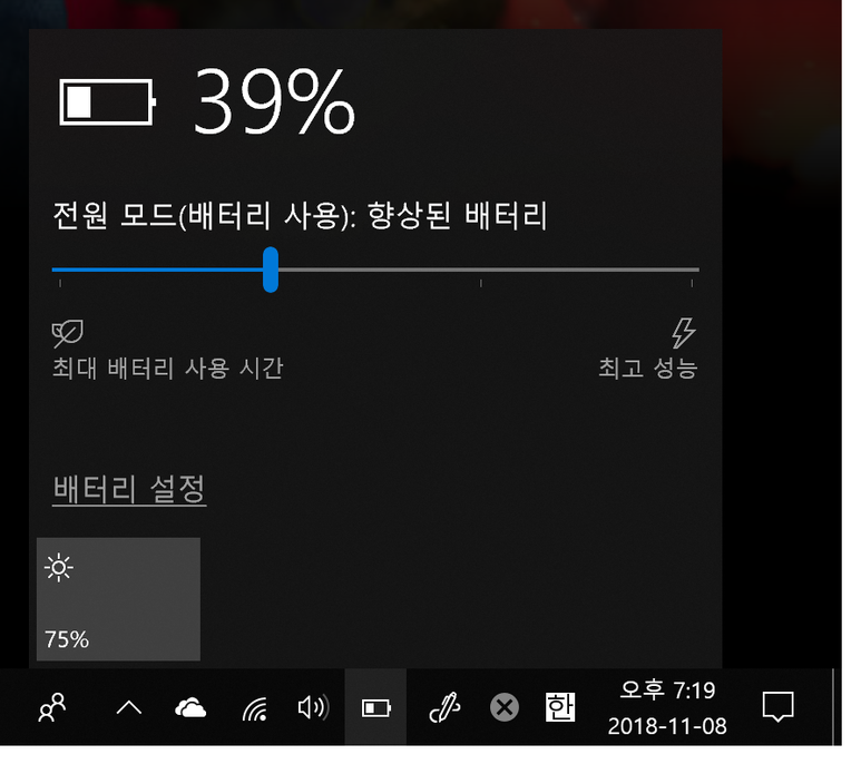 즉, 가벼운 작업만 할 경우 약 7시간 정도 사용이 가능하다고 생각해도 되겠네요. 사실 화면 밝기 75%도 상당히 밝은 편이어서 과하게 밝은 장소만 아니면 50~60% 밝기로도 충분히 불편함 없이 사용이 가능합니다.