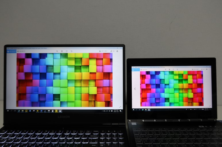 색상 재현력과 400nits의 최대 밝기는 200만 원 이상의 하이엔드 노트북과 비교해도 손색이 없는 수준입니다. 색감에 둔한 사람도 일반 모니터와 요가북 C930을 옆에 나란히 두고 비교하면 육안적으로 체감이 될 정도의 수준입니다.