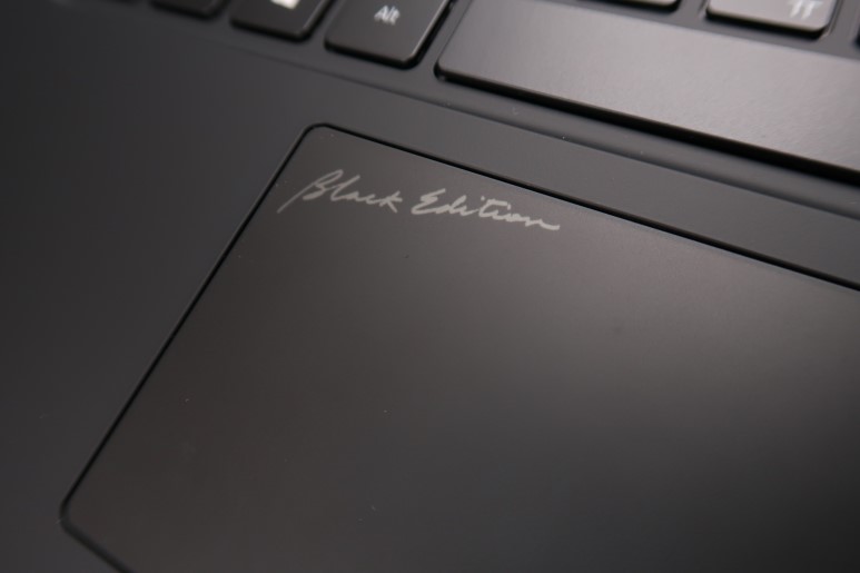 키보드 배열은 특별히 나무랄 것이 없습니다. 상판은 단단한 플라스틱, 후면은 패브릭 재질인데, 전반적인 촉감은 충분히 고급스럽게 느껴집니다. 특히 트랙패드에 새겨진 Black Edition 로고는 멋스럽네요.