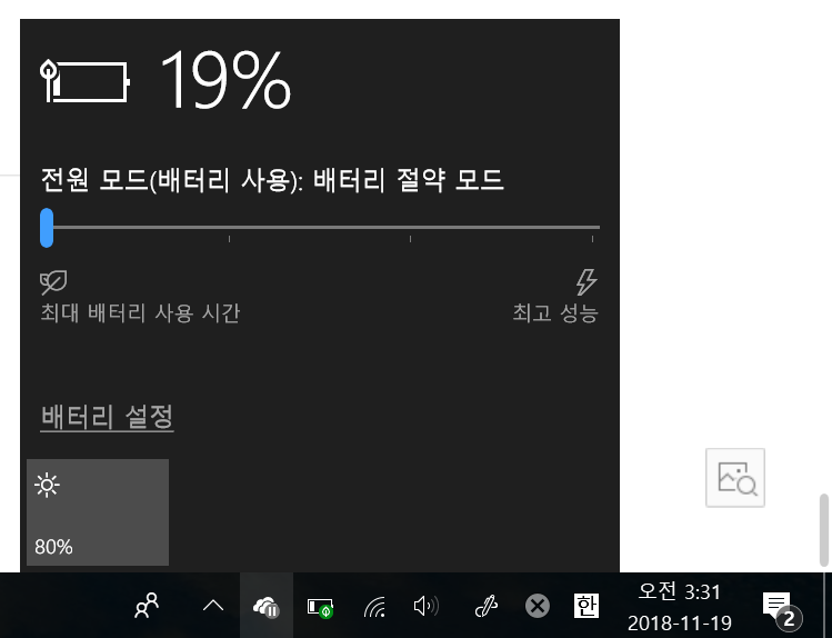 애초에 기기의 하드웨어에 비해 배터리의 절대적인 용량이 부족합니다. (35Wh) 그나마 5W 등급의 Y프로세서라면 괜찮겠지만 15W급 U프로세서와 MX150 GPU의 조합으로는 화면 밝기 80%로 블로그 편집 작업을 했을 때 배터리 사용시간이 3시간보다 조금 적게 나왔습니다.