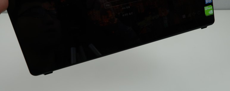우측 베젤에 내장된 지문 인식기는 인식률이 평균보다 조금 떨어지는 것으로 체감됐습니다. 대부분의 경우는 문제없이 인식되지만 평균적인 노트북 지문인식기를 사용할 때보다는 핀번호를 직접 입력해야 되는 상황이 자주 생겼습니다.