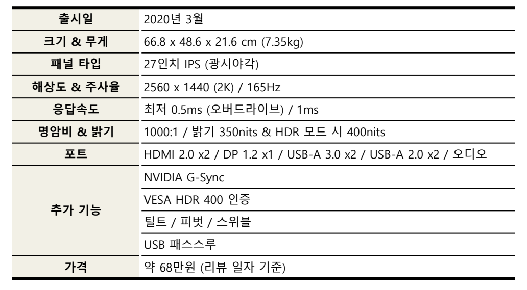 XB273K GP는 정말 좋지만 현실적으로 넘보기 힘든 느낌이었다면, 이 녀석은 정말로 실사용을 위해 하나 구매할까 고민이 될 정도입니다.