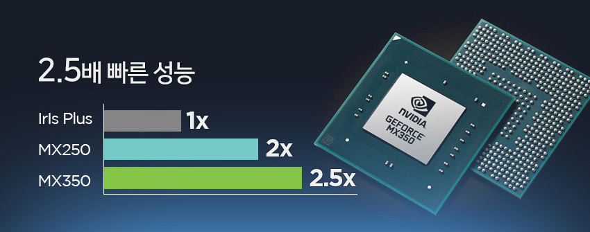 인텔의 10세대 아이스레이크 CPU는 엄청난 스펙이 아니지만, 국내에서 최초로 MX350 그래픽을 선보인 모델이라는 점에서 상당히 인상적인 녀석이기도 합니다. 사실상 가벼운 울트라북에는 GTX 그래픽을 장착하기 힘들기 때문에 MX 등급이 한계라고 봐야죠. 그런 의미에서 MX 그래픽 시리즈의 성능 향상은 전반적인 울트라북의 기대 스펙에 큰 영향을 끼치는 요소라고 생각합니다.