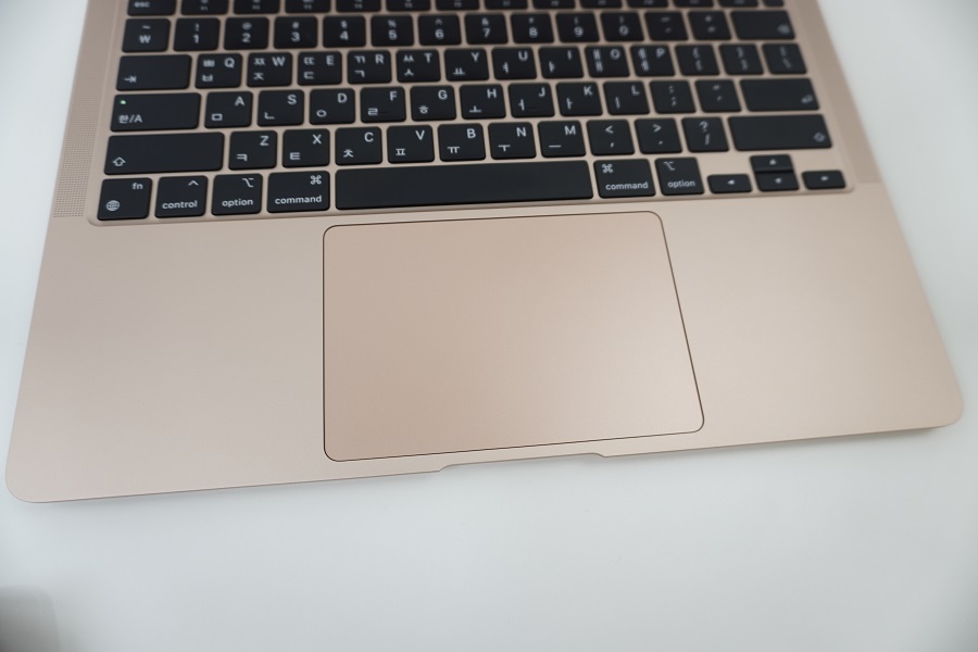 다행히 이번 M1 맥북에어는 그 악명 높은 버터플라이 키보드 구조가 아닙니다. 과거에 좋은 평가를 받았던 애플의 펜타그래프 키보드여서 대부분의 사용자는 타건감에 있어서 불만을 가지지는 않을 것이라고 생각해요.