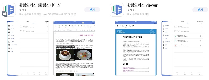 일반적인 윈도우 전용 MS 오피스, 한컴 오피스는 설치가 불가능했습니다. 다행히 애플 스토어에 바로 호환이 되는 워드, 엑셀, 한글 앱이 있지만 오피스365 나 한컴 스페이스와 같은 구독 서비스를 이용해야 기능을 모두 사용할 수 있었습니다.