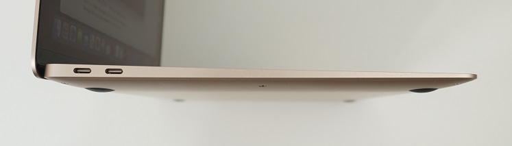 그리고 애플 특유의 완벽한 CNC 알루미늄 가공은 다른 윈도우 노트북에서는 느껴볼 수 없을 정도의 깔끔한 마감을 자랑합니다. 하판이나 힌지 연결부 모두 한치의 오차도 없고, USB-C 포트 모양에 맞춰서 알루미늄 패널 테두리를 성형하는 디테일은 거의 “결벽증”에 가까운 완성도라고 평가할 수 있겠네요.