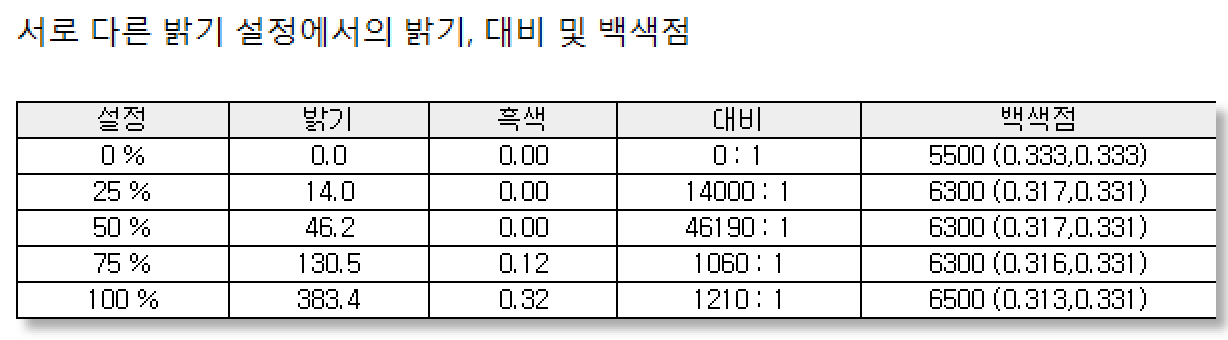 그런데 초기 화이트 밸런스가 많이 따뜻한 편이라 쨍한 화면에 익숙하신 분들은 "오줌액정"이라고 느끼실 수 있을 것 같습니다. 사실 색 보정 작업을 할 때에는 청색 값을 많이 낮추는 편이어서 오히려 그래픽 작업 용도로는 좋은 밸런스인데, 일반적인 사용자 눈에는 과하게 누렇다고 느껴질 수 있다는 점 참고해주시기 바랍니다. 이 부분은 윈도우 시작 메뉴에서 "DCCW"를 입력하면 입맛에 맞게 조정 가능하니 걱정하지 않으셔도 됩니다.