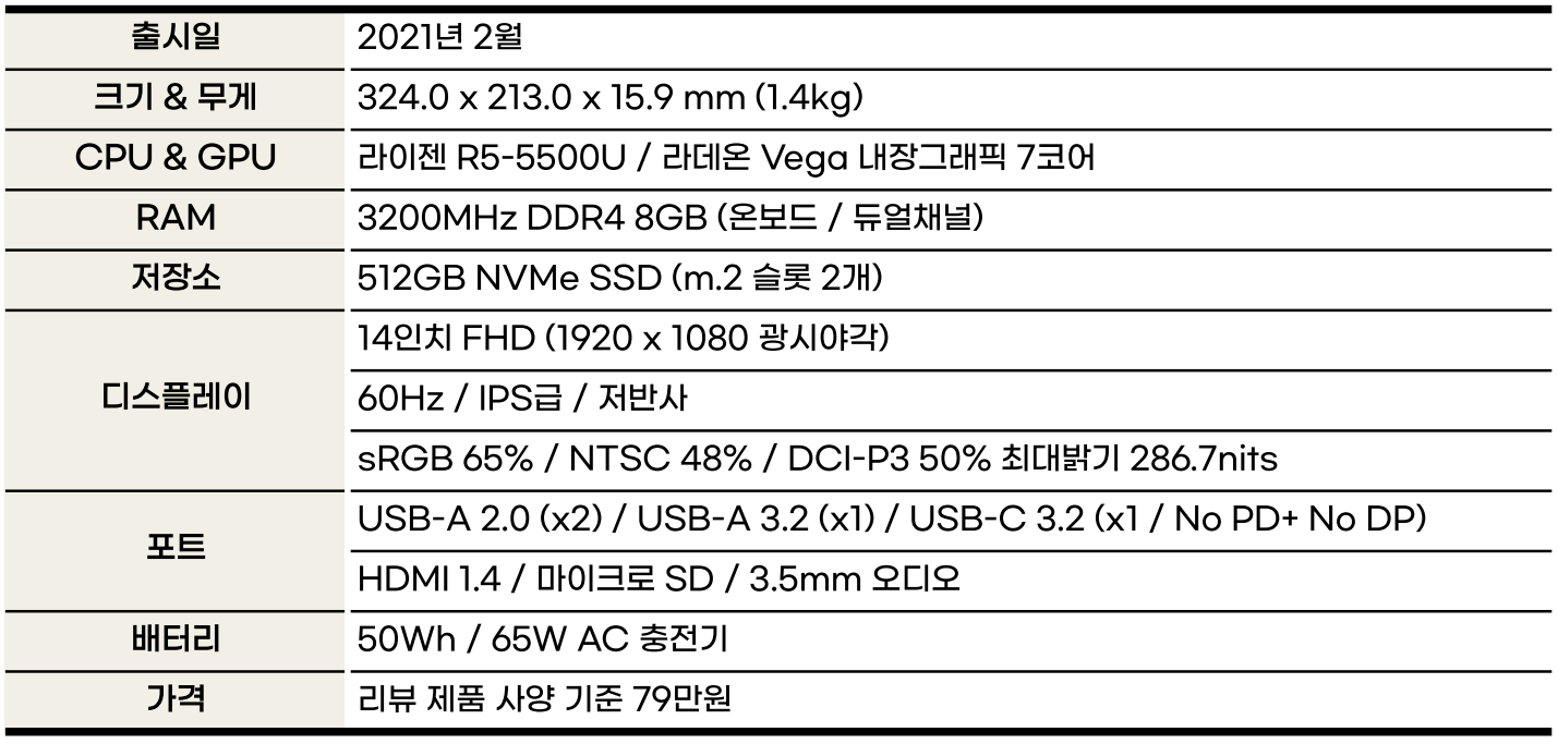 특히 비슷한 가격대에서 경쟁하는 레노버의 아이디어패드 슬림5는 USB-C PD 충전과 디스플레이 출력이 지원되고, 에이서의 스위프트3는 4266MHz 램을 지원하기 때문에 비보북 S14는 확실히 내부적인 요소는 부실하다는 느낌이 많이 들게 되죠.