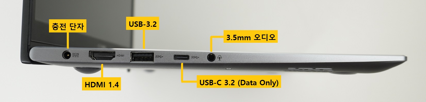 심지어 USB-C 포트에 PD 충전이나 디스플레이 출력 기능이 없어서 기능성이 떨어지는 편이에요. HDMI 포트마저 1.4 버전이어서 4K 디스플레이 연결은 물 건너갔다고 봐야겠죠. 그나마 HDMI 1.4가 달린 노트북도 USB-C 디스플레이 출력 기능이 있으면 동글을 사용 해서 4K 디스플레이 연결이 가능해지는데 비보북 S14는 아예 선택지가 없습니다.