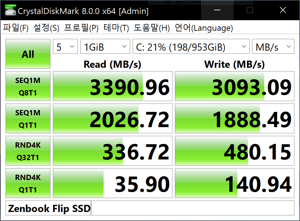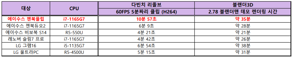당연히 13인치급 2in1 노트북에서 엄청난 성능을 기대하긴 힘듭니다. 젠북플립 모델은 타이거레이크 노트북 중에서 성능 유지력이 상당히 떨어지는 편이더라고요. 하지만 젠북플립은 애초에 4K OLED 디스플레이와 휴대성 좋은 2in1 폼팩터가 구매 포인트인 제품이기 때문에 성능은 기본적인 작업에 지장이 없다면 크게 지적할 요소는 아니라고 생각합니다.