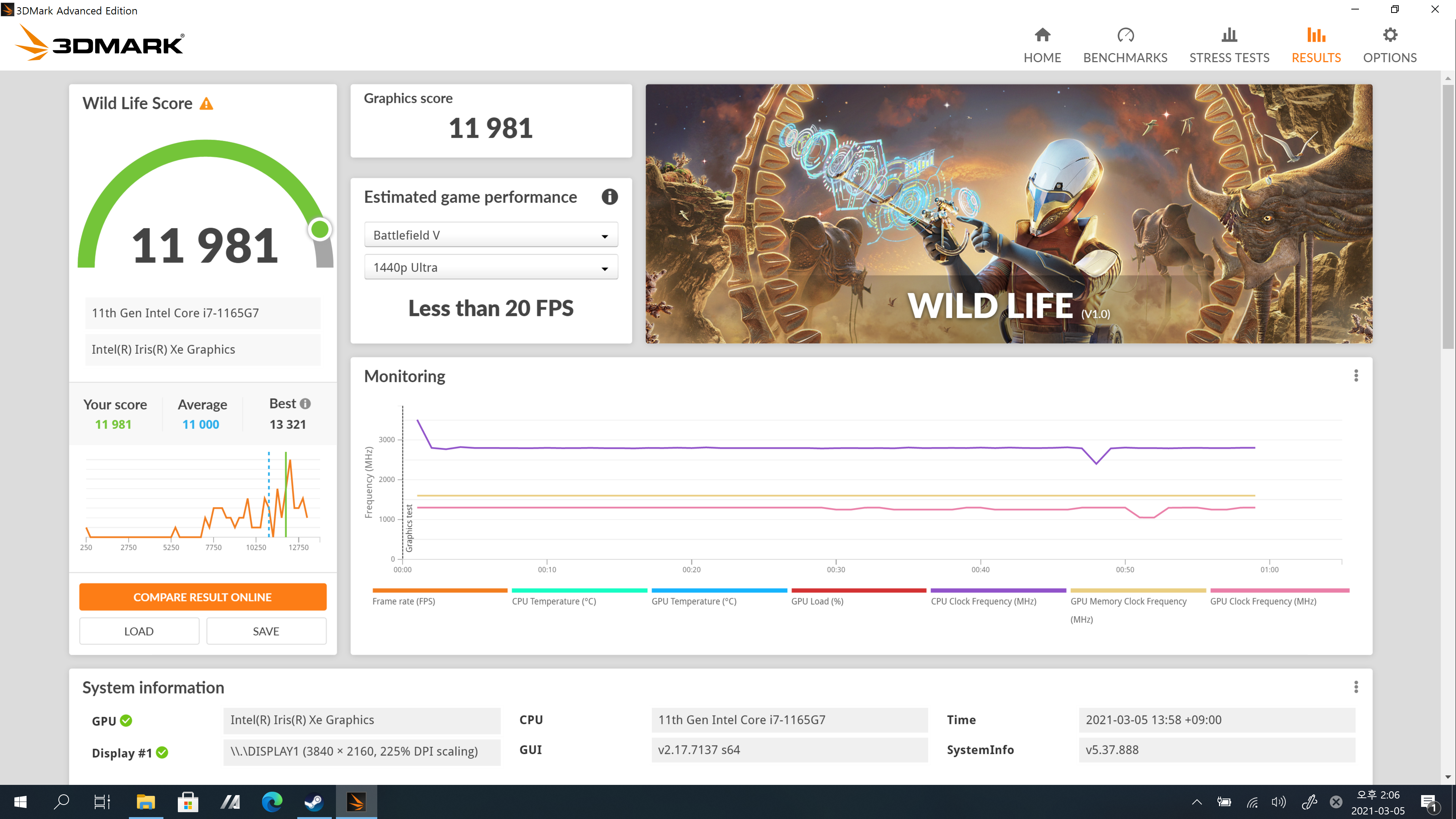 총점은 CPU(물리) + 그래픽 성능을 종합한 것이고, 그래픽 점수가 총점에 미치는 영향이 압도적으로 높다. 순수 그래픽 성능만 평가하고 싶다면 총점이 아니라 별도의 그래픽 세부 항목 점수를 참고할 것.