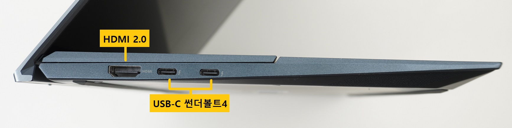 그나마 올해에는 USB-C를 썬더볼트4 규격으로 달아줘서 PD충전이나 디스플레이 출력이 지원되지만, 여전히 HDMI 포트가 1.4 버전인 것은 이해를 할 수가 없습니다. 혹시라도 보조 디스플레이 때문에 내부 대역폭이 부족해서 그런 것일 수도 있겠지만, 그런 기술적인 이유 없이 단순히 원가절감 때문이라면 에이수스는 정말 "쫌생이"라고 욕먹어도 할 말 없다고 생각해요.