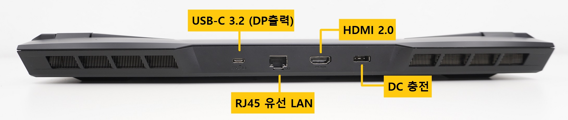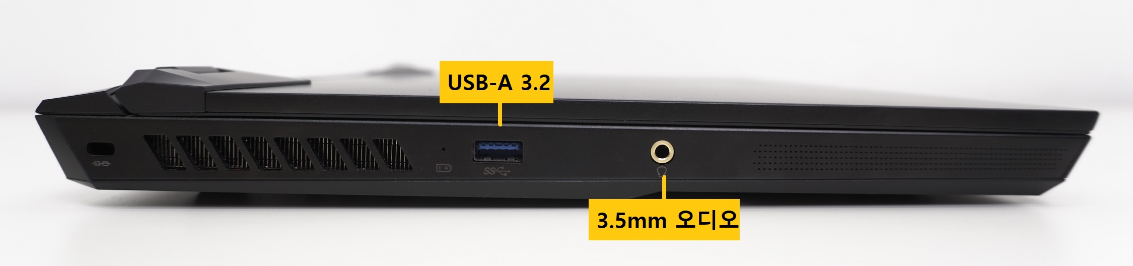 데스크탑 PC 대용으로 활용할 수 있는 중형 노트북이라는 점을 감안한다면 GP76의 포트 구성은 상당히 빈약한 편입니다. USB-A 3개, USB-C 1개, HDMI, 유선 랜포트 정도가 끝이더라고요. 보통 이 정도 체급의 게이밍 노트북에는 추가 DP 출력이나 USB-C 포트를 더 제공해주는 편이라서 아쉽게 느껴졌습니다.