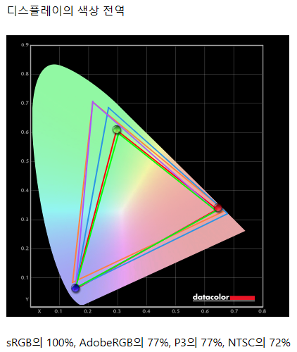 GP76의 디스플레이는 이 가격대의 게이밍 노트북에서 딱 평균적인 수준이라고 볼 수 있습니다. 144Hz 주사율, NTSC 72% 색역, 최대 밝기 300nits 전후면 크게 부족할 것 없는 스펙이죠. 그런데 올해에 출시된 신형 게이밍 노트북들 중 GP76과 비슷한 가격대에서 QHD 해상도, 165Hz 이상, 높은 최대 밝기를 지원하는 모델도 존재해서 약간은 트렌드에 뒤쳐진 게 아닌가 하는 생각이 조금 듭니다.