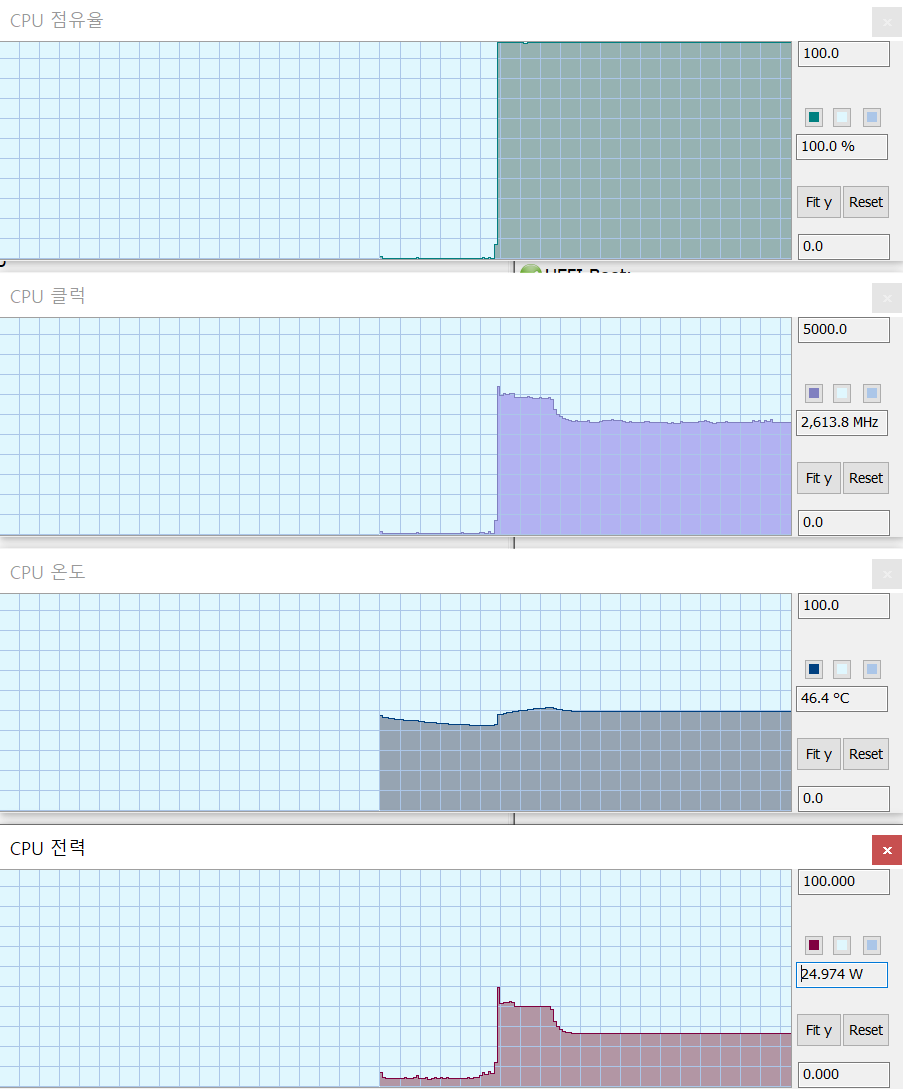 CPU나 GPU에 100% 부하를 주는 상황에서 노트북이 각 하드웨어에 전력을 얼마까지 공급할 수 있는지, 그리고 해당 전력을 유지할 때 내부 온도가 어느 정도로 유지가 되는지 확인하는 테스트. 유지 가능한 전력이 높을수록 대체로 성능이 좋지만, 내부 온도나 팬 소음이 커지는 경향이 있다.