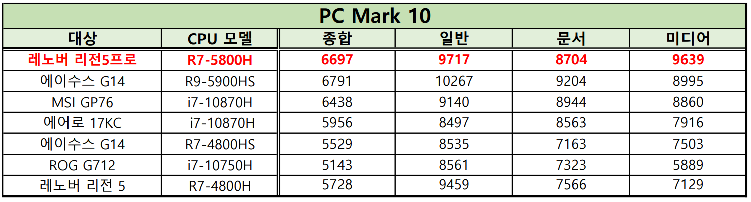 저는 리전5 프로가 게임 뿐만 아니라 고사양 편집 작업 용도로 활용하기에도 좋은 구성이라는 것이 가장 큰 장점 중 하나라고 생각합니다. 성능 외적으로는 편집 작업에 유리한 16:10 화면비와 QHD 해상도가 있겠죠. 성능적인 측면에서는 대부분의 게이밍 노트북이 GPU의 성능 유지력에 치중하느라 CPU 성능은 간과하는 경우가 많은데, 리전5 프로는 CPU와 GPU의 전력 및 성능 유지력이 좋더라고요.