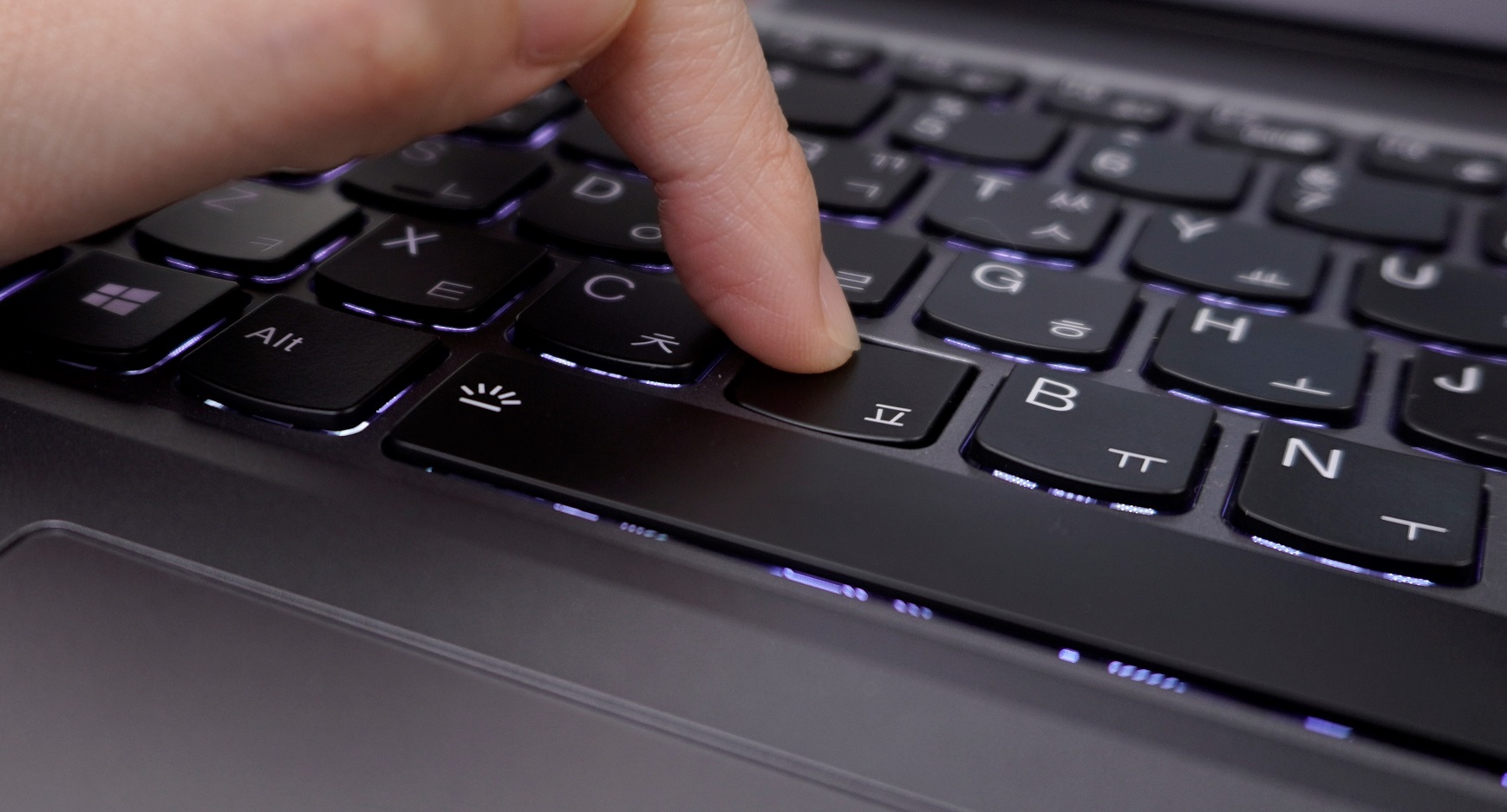 "게임뿐만 아니라 문서 편집 용도로 사용해도 만족스러운 키보드와 트랙패드 구성."