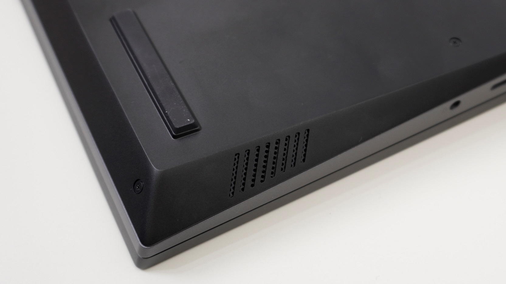 일반 리전5 모델을 바로 옆에 두고 만져보면 확실히 리전5 프로의 알루미늄 재질이 튼튼하고 고급스럽다는 것을 느낄 수 있습니다. 키보드덱과 측/후면의 통풍 그릴 정도를 제외하면 풀 알루미늄 재질이더라고요. 프레임과 하판도 튼튼하게 잘 만들어져 있어서 쉽게 휘거나 긁힐 것 같은 느낌은 아닙니다.