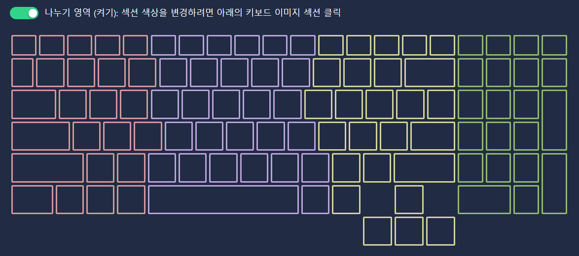 대부분의 배열이 일반적인 데스크탑 키보드와 비슷하고, 넘버패드도 압축 배열이 아닌 정석 배열인 데다가 방향키도 큼직하게 다른 키와 구분해서 배치가 되어있습니다. 게임이든, 문서 작업이든 누구나 쉽게 적응할 수 있는 정석적인 배열이라고 볼 수 있겠죠. 굳이 단점을 찾자면, F1~F12 사이의 키가 4개 단위로 구분되어 있지 않다는 정도인데 저는 크게 불편하게 느껴지지 않았어요.