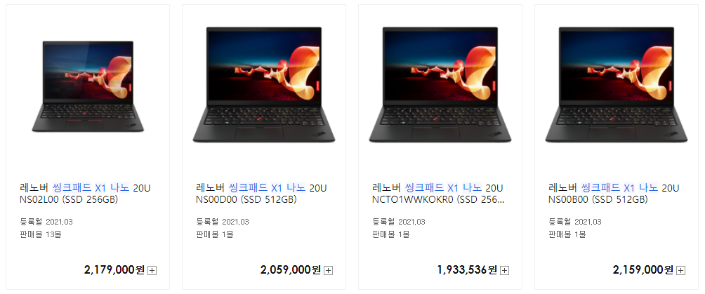 씽크패드 시리즈라고 무조건 비싼 것은 아닙니다. 가성비 좋은 60~70만원대의 씽크패드 E와 L시리즈도 존재하죠. 그런데 X1 시리즈는 워크스테이션급 P 시리즈 정도를 제외하면 제일 비싼 최상위급 라인업이라 가격표만 보면 순간 그 비싸다는 LG 그램과 삼성 갤럭시북을 가볍게 뛰어넘을 정도입니다. (보통 200만원 전후)