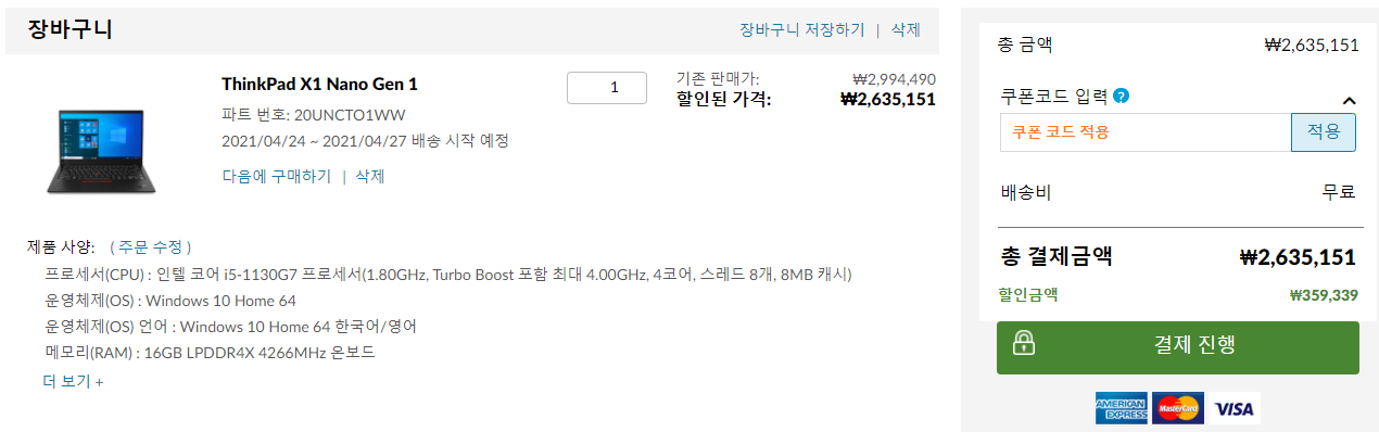 1) 아래에 있는 공식 홈페이지에서 씽크패드 X1 나노 페이지 링크 클릭