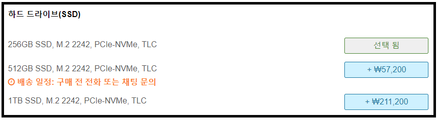 5) SSD 구성 - 취향에 따라 / 512GB가 가장 무난하다고 생각