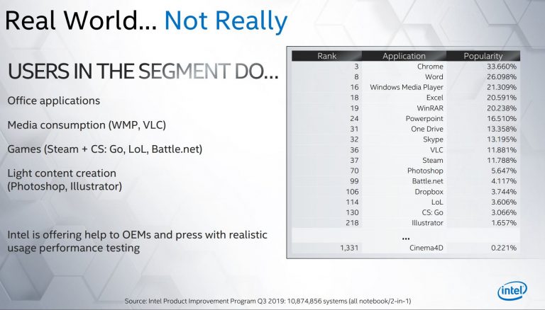 반복된 공정 개선의 실패로 인해 인텔 CPU가 점점 성능적인 측면에서 AMD 라이젠에게 밀리기 시작하자, 인텔은 새로운 활로를 모색하기 시작합니다. 이 때문에 최근 인텔의 발표 자료들을 보면 순수 성능이나 벤치마크 결과보다는 “사용자 경험”을 강조하고 있다는 것을 확인할 수 있죠.