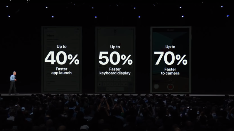 이후에는 소프트웨어 개발 총괄을 담당하는 크레이그 페더리기가 나와서 IOS12가 기존에 비해 얼마나 빨라졌고 인터페이스가 개선됐는지에 대해 설명합니다. 이런 추상적인 데이터는 너무 맹신하지 않는게 좋을 것 같군요…