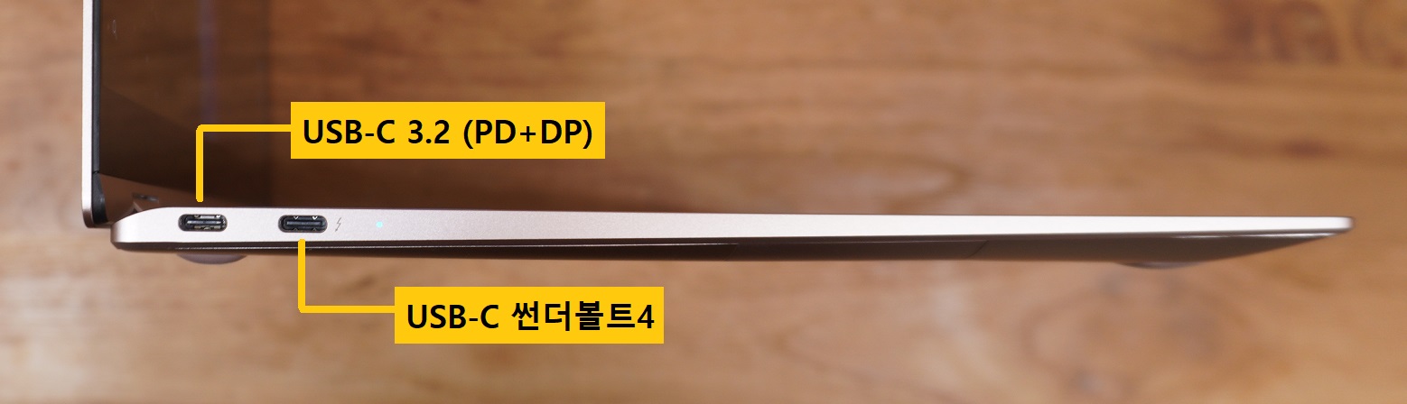 3개의 USB-C 중 썬더볼트4가 지원되는 것이 1개밖에 없다는 점은 아쉽지만, 이 역시 기분의 문제일 뿐이지, 썬더볼트4 기기를 2개 이상 동시에 연결해야 되는 상황이 머리에 잘 그려지지는 않네요. 참고로 3개의 USB-C 포트는 모두 PD 충전과 DP 출력이 지원됩니다.