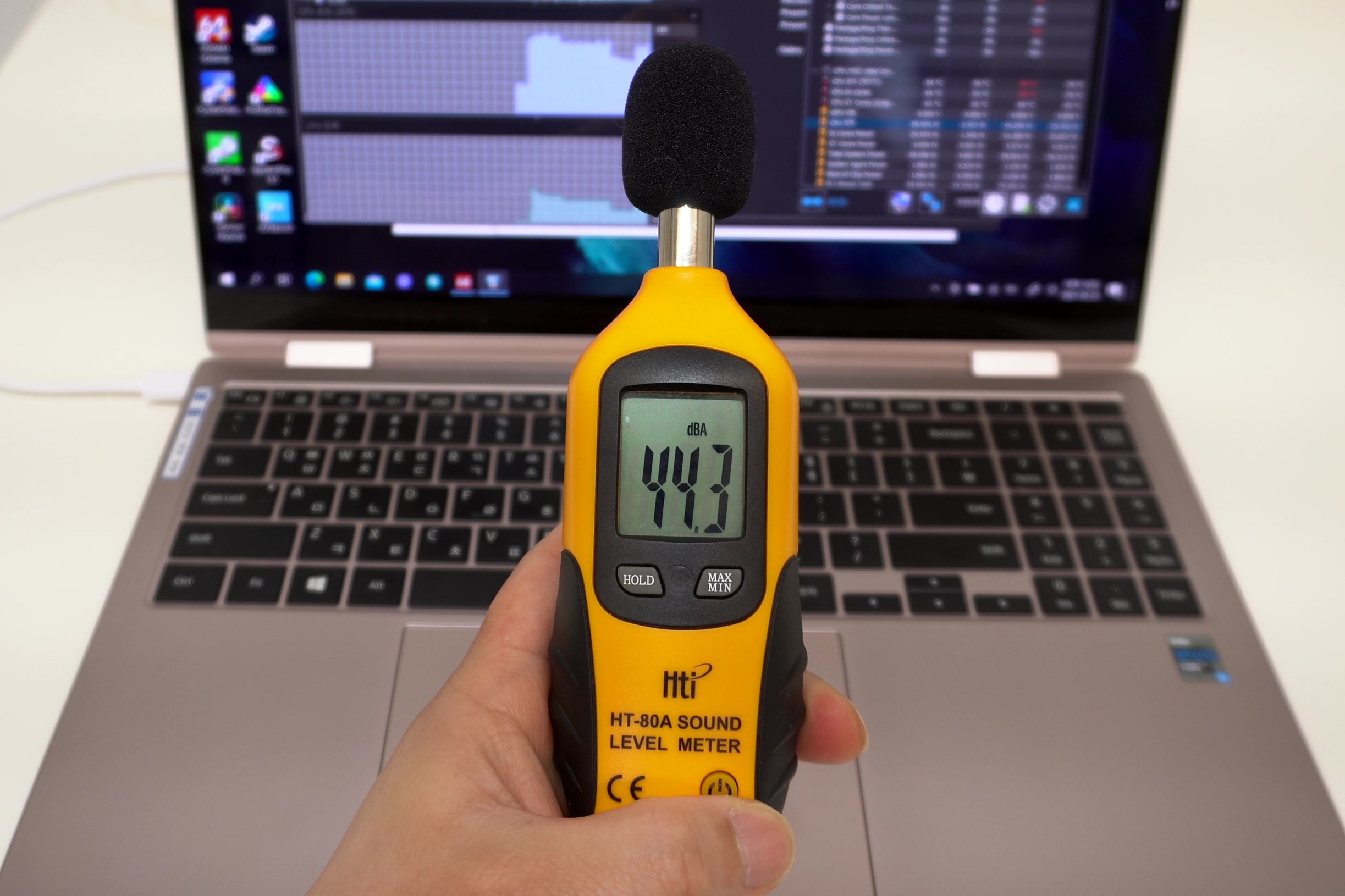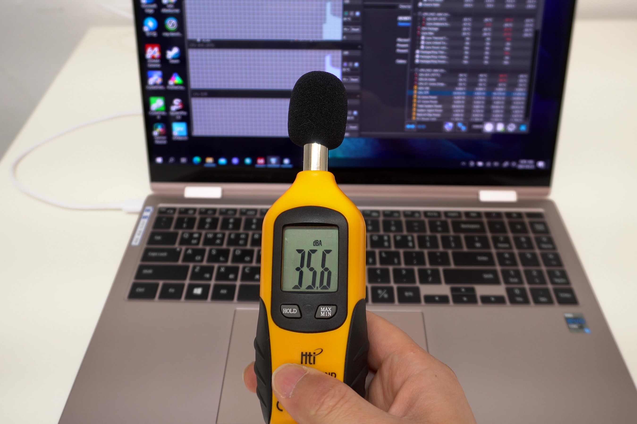 갤럭시북 프로 360과 같이 얇은 바디에 준수한 쿨링 성능까지 뽑아내기 위해서는 어쩔 수 없이 희생되는 요소가 생길 수밖에 없습니다. 그건 바로 팬 소음이죠. 고사양 작업을 할 때에는 44.3dB까지 측정됐기 때문에 평균적인 저전력 노트북보다는 많이 시끄러운 편이라고 할 수 있겠죠.