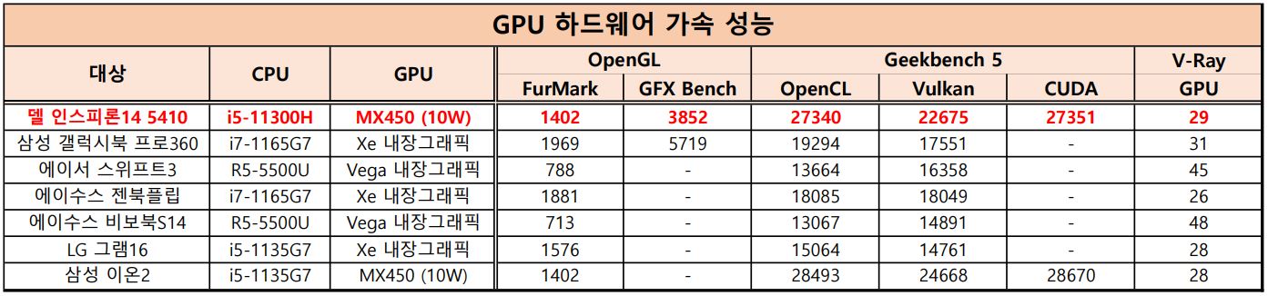 더 이상 볼것도 없습니다. 그냥 인스피론14 5410의 성능 지표는 "쓸만하지만, 사양과 구성을 생각하면 납득하기 어려운" 수준으로 실망스럽다고 생각해주세요.