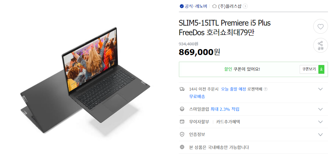- 13인치 / i5-1135G7 / 16GB / 512GB / 프리도스 / 약 87만원 -