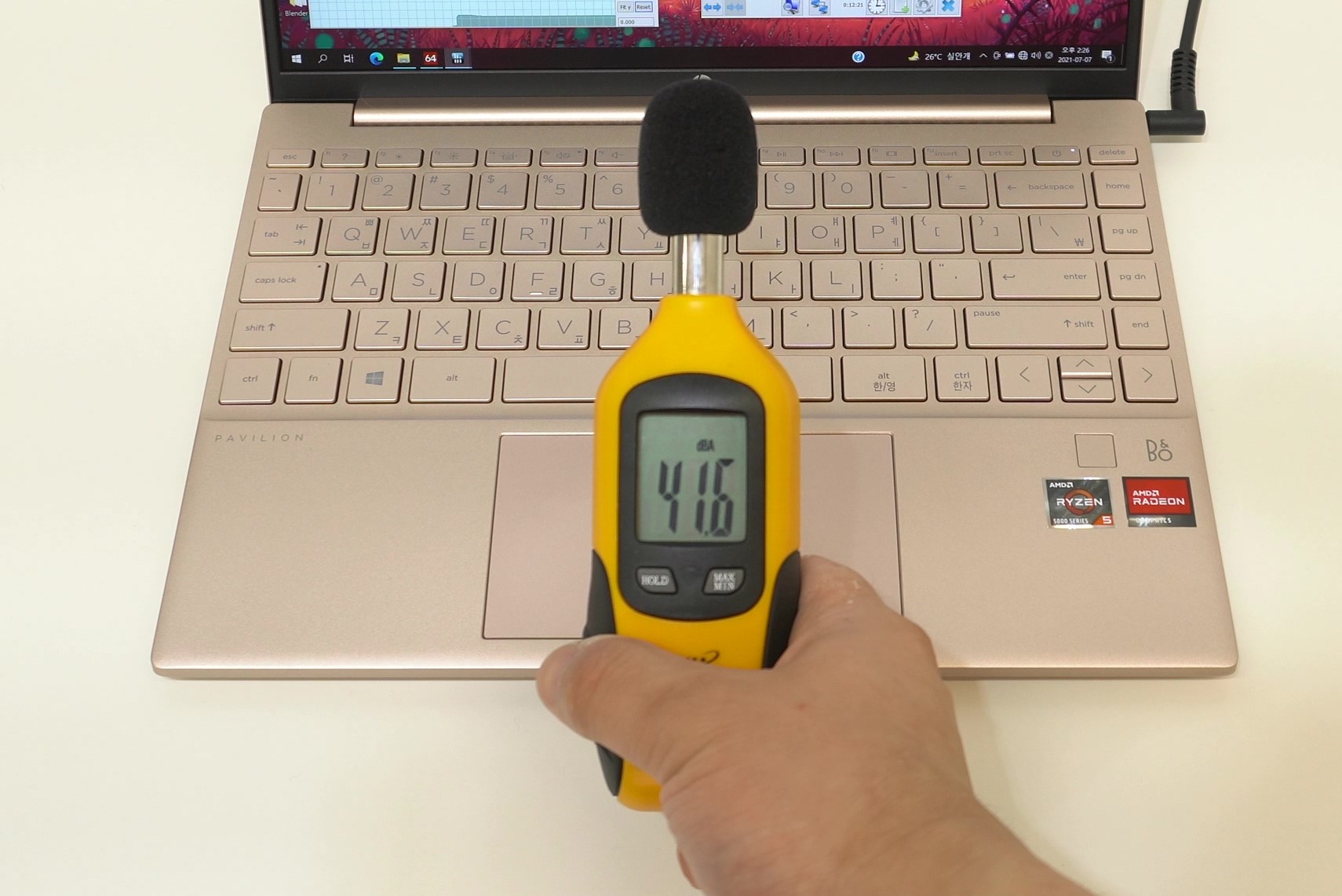 일반적인 15W 최대 부하 상태에서는 팬 소음이 41.6dB라서 독서실 같은 조용한 환경에서 사용하기 살짝 부담스러울 수는 있습니다. 하지만 간단한 문서 편집, 인터넷 작업 중에는 거의 무소음에 가깝기 때문에 크게 걱정하지 않으셔도 될 거 같아요.