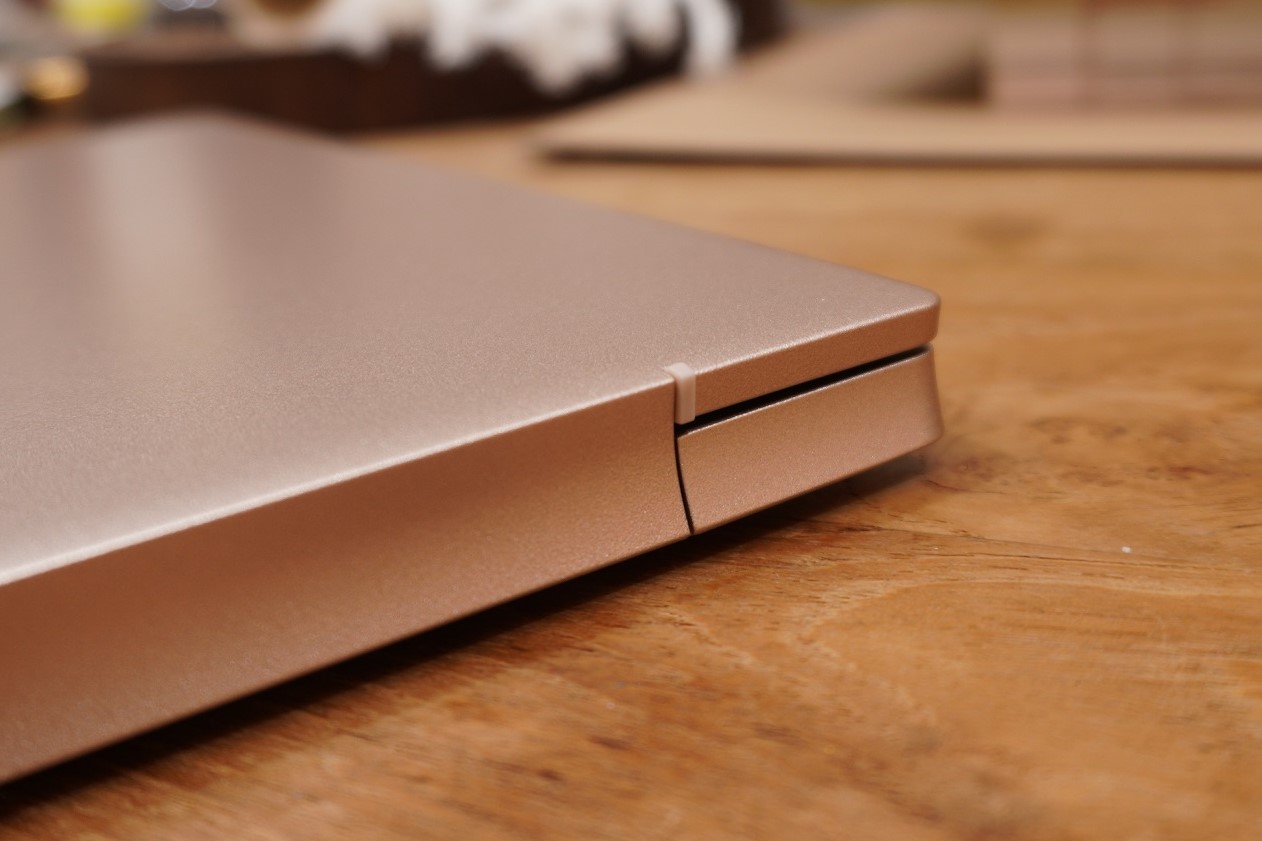 그런데 정작 손으로 만져보면 노트북의 프레임 재질이 종이같이 낭창거리고 외부 도색도 거친 느낌이 나서 약간 저렴한 느낌이 납니다. (2018년 이전의 LG 그램 시리즈 같은 느낌) 주변 사람들이 보기에는 이쁜 디자인이지만 정작 사용자 만족도는 조금 떨어진달까요...