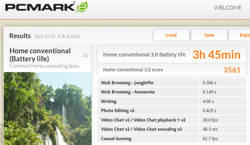 참고로 더 고사양 작업이 PC Mark 8 배터리 테스트 기준으로는 3시간 45분 정도 버티더라고요. 저는 저전력 휴대용 울트라북은 4시간 이상을 기대하는 편이라, 살짝 평균치 이하라고 보셔도 될 것 같습니다.