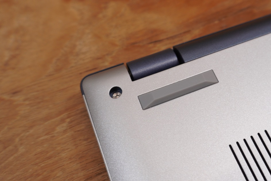 하단 환기 면적이 늘어나고 키보드에 미세한 경사가 생겨서 타자 치기 편해진다는 장점이 있는 대신 노트북의 디스플레이가 180도 열리지 않는다는 것이 단점입니다. 저는 개인적으로 180도 개방에 크게 집착하지 않는 편인데, 중요하게 생각하시는 분들에게는 마이너스 요인이 될 수도 있겠네요. 힌지에 고무 발판으로 보강 처리가 되어 있어서 긁힐 걱정은 없지만, 마찰력이 썩 좋지는 못해서 사용하는 중에 노트북이 조금씩 미끄러지는 상황이 발생할 수도 있습니다.