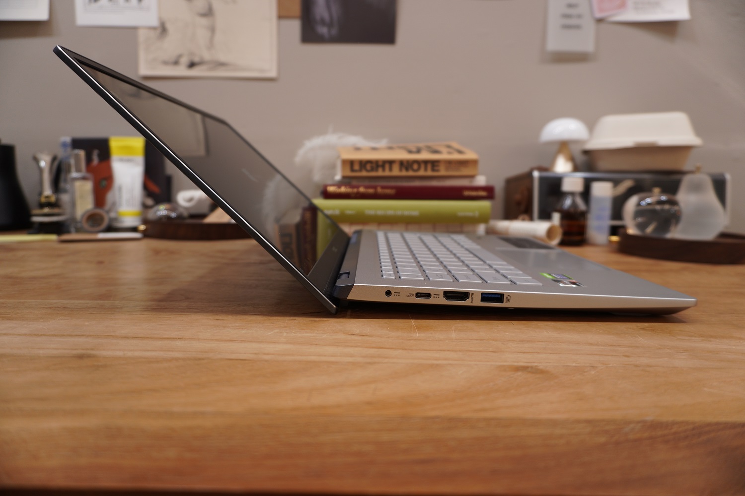 일상 사용에 필요한 포트는 모두 잘 갖춰져 있습니다. USB-A 2개에 PD 충전과 DP 출력이 지원되는 USB-C 포트, HDMI 포트, 3.5mm 오디오잭까지 있으니 어지간해서 확장 허브를 달아서 사용할 일은 없지 않을까 싶네요. 굳이 따지자면 USB-A가 5Gbps 대역폭까지만 지원되는 3.2 Gen1 세대이긴 하지만, 어지간한 용도로는 5Gbps 대역폭을 넘길 일은 없지 않을까 싶네요.