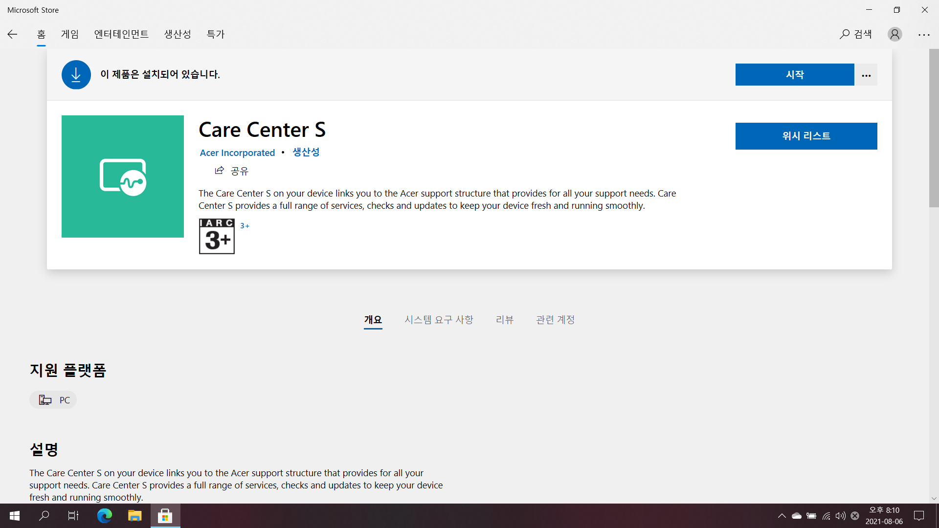 그래서 이론상 Acer Care Center라는 전용 컨트롤러 소프트웨어를 설치하지 않고도 별다른 불편함 없이 노트북을 사용할 수는 있지만, Fn+F 키 조합으로 성능 모드 변경 기능을 사용하기 위해서는 해당 프로그램을 설치해야 합니다. (저소음 / 균형 / 고성능 모드)