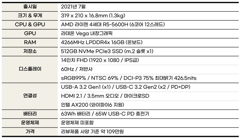 R5-5600H / 16GB 램 / 512GB SSD / 프리도스