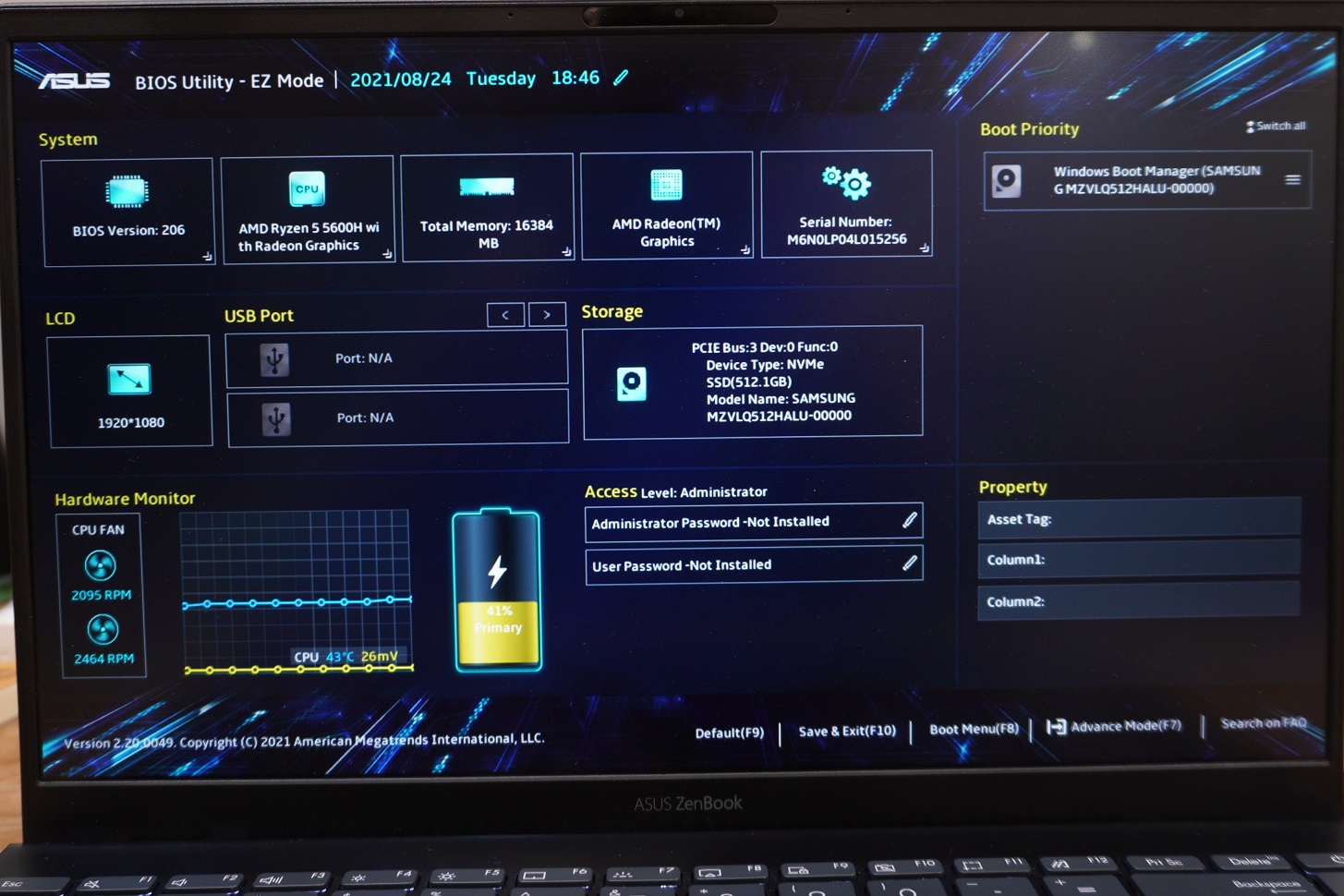 "에이수스답게 바이오스 메뉴는 깔끔하고 직관적이다. 그런데 제발 MyAsus 컨트롤러 앱은 조금 개선해줬으면..."
