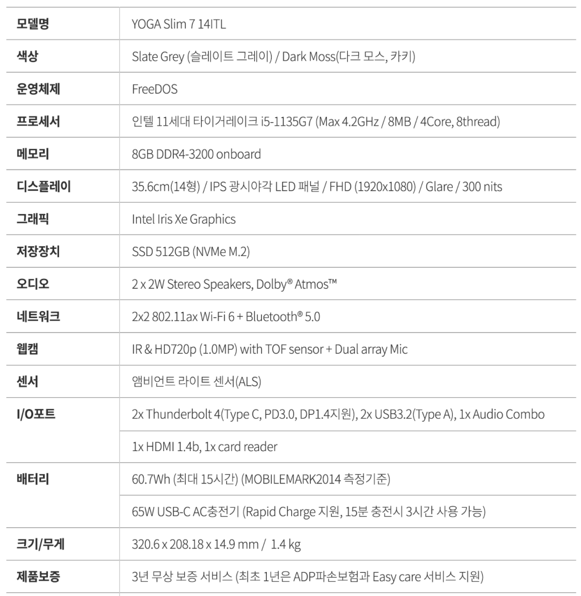 [ 레노버 요가 슬림7 14ITL ]