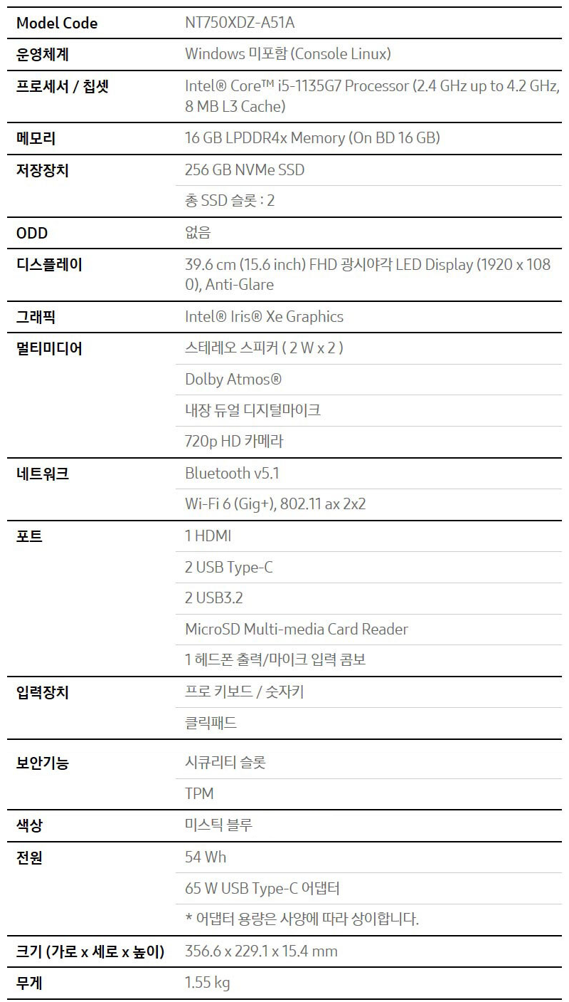 갤럭시북 NT750XDZ-A51A 1.55kg 대학생 노트북
