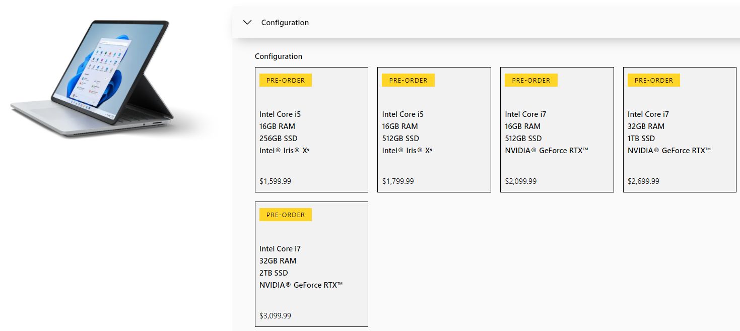 그런데 가격 역시 그만큼 비싸졌습니다. 제가 기억하기로 2020년형 서피스 프로7은 시작 가격이 $750 정도였는데, 서피스 프로8은 $1,099 부터 시작할 것 같더라고요. 물론 정식 예약 판매가 시작되면 정확한 사양과 가격을 알 수 있겠지만, 이제는 최소한 100만원 이하의 가격에 서피스 프로를 만나보기는 어렵지 않을까 싶습니다.