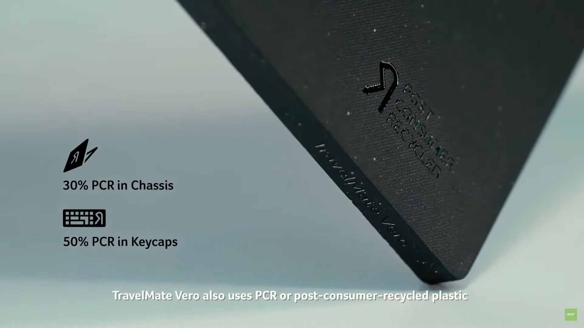 작년부터 에이서가 집중하고 있는 키워드가 바로 "친환경"입니다. 베로(Vero) 시리즈 기기들은 모두 재활용 플라스틱(PCR)을 주로 사용해서 만들어졌다고 하는데, 확대 사진을 보면 표면 재질이 상당히 독특하다는 것을 알 수 있습니다. 단순히 재활용 재질을 사용했다는 점 외에도 다양한 절전 모드를 제공해서 기기의 전력 소모를 최소화시킨다고는 하지만... 이게 과연 일반적인 노트북의 절전 모드와 큰 차이가 있을지 여부는 잘 모르겠습니다.
