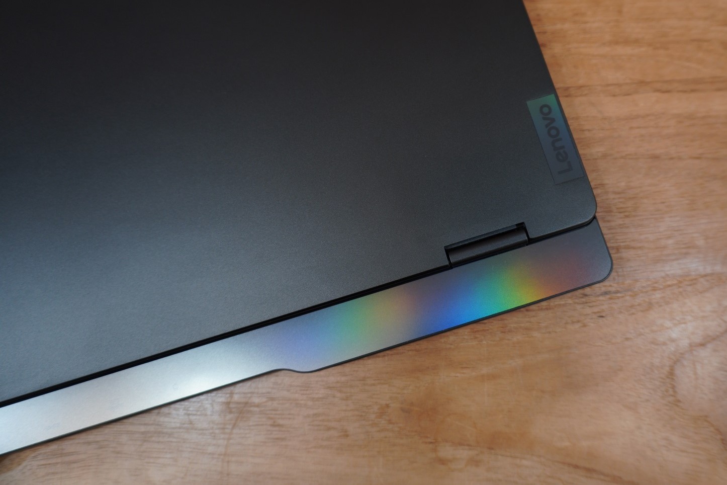 그리고 특이하게도 로고와 힌지 후면 돌출부에는 사용자가 보는 각도에 따라 색이 알록달록하게 변하는 디자인 포인트도 있습니다.