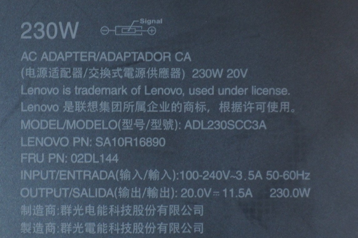 기본 AC 충전기는 230W 규격입니다. 기존 리전 시리즈의 충전기가 거의 벽돌 수준이었다는 점을 감안하면 많이 날씬해지긴 했지만, 아무래도 고성능 노트북의 충전기는 여전히 크고 무거울 수밖에 없습니다. 그래도 백팩에 수납하고 다닌다면 크게 부담이 되는 수준은 아니라고 생각해요.
