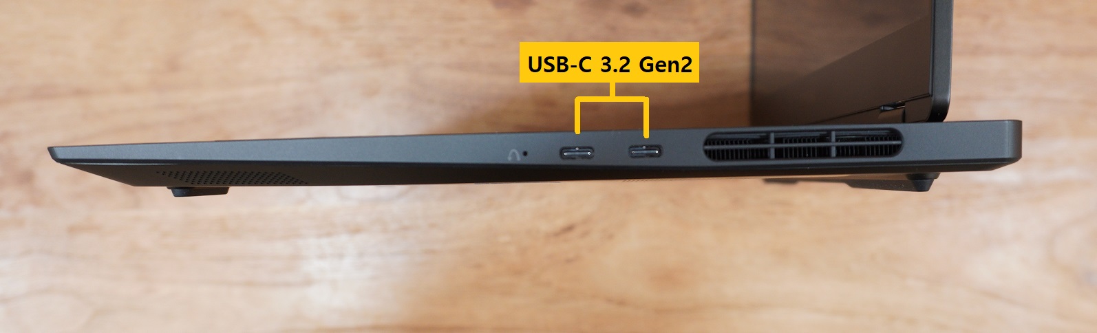 일반형 리전 시리즈와 비교하면 HDMI와 유선 랜포트가 없다는 것이 단점이라고 할 수는 있겠습니다. 이 두께에 유선 랜포트를 넣는 것은 무리였을 것 같지만 HDMI의 부재는 약간 아쉽네요. 물론 2개의 USB-C 포트 모두 디스플레이 출력이 지원되기 때문에 다중 모니터 연결도 충분히 가능하지만, HDMI 케이블을 사용하려면 별도의 젠더나 허브를 사용해야 된다는 불편함은 있어요.