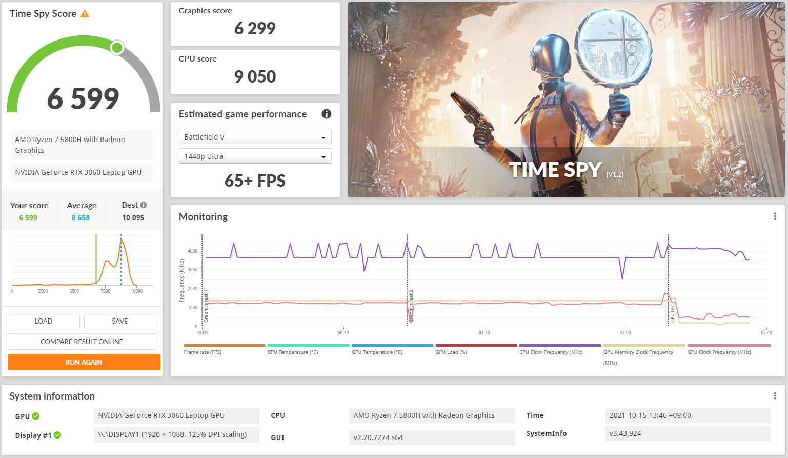 특히 로스트아크는 몬스터 개체가 많은 카오스 던전을 기준으로 테스트했는데, CPU 점유율이 높아지는 구간이라서 그런지 CPU 클럭제한 전과 후의 결과 차이가 많이 나더라고요. 기본적으로 CPU 점유율이 높은 게임은 약간 불안 요소가 있지만, 대체로 RTX3060 수준의 게이밍 노트북에서 기대할 수 있는 게임 성능은 충분히 뽑아줍니다. 기본 TGP(그래픽 전력)가 80W이긴 하지만, CPU 부하가 높지 않을 때에는 엔비디아 다이나믹 부스트 기능이 활성화돼서 TGP가 100W까지 올라가니까요.
