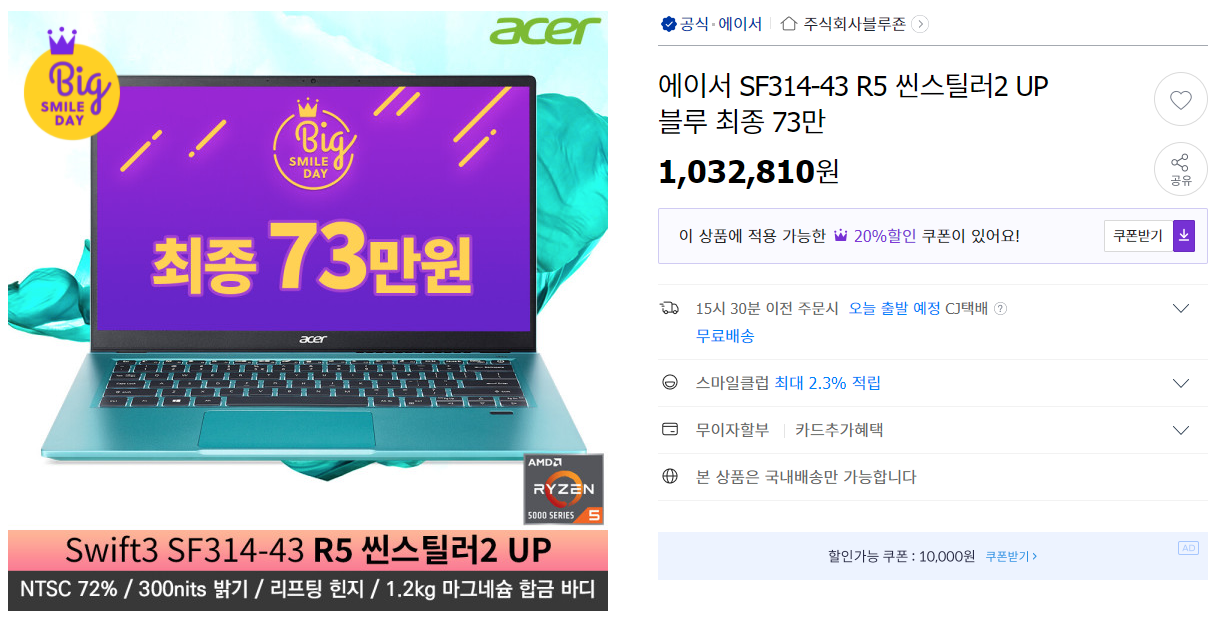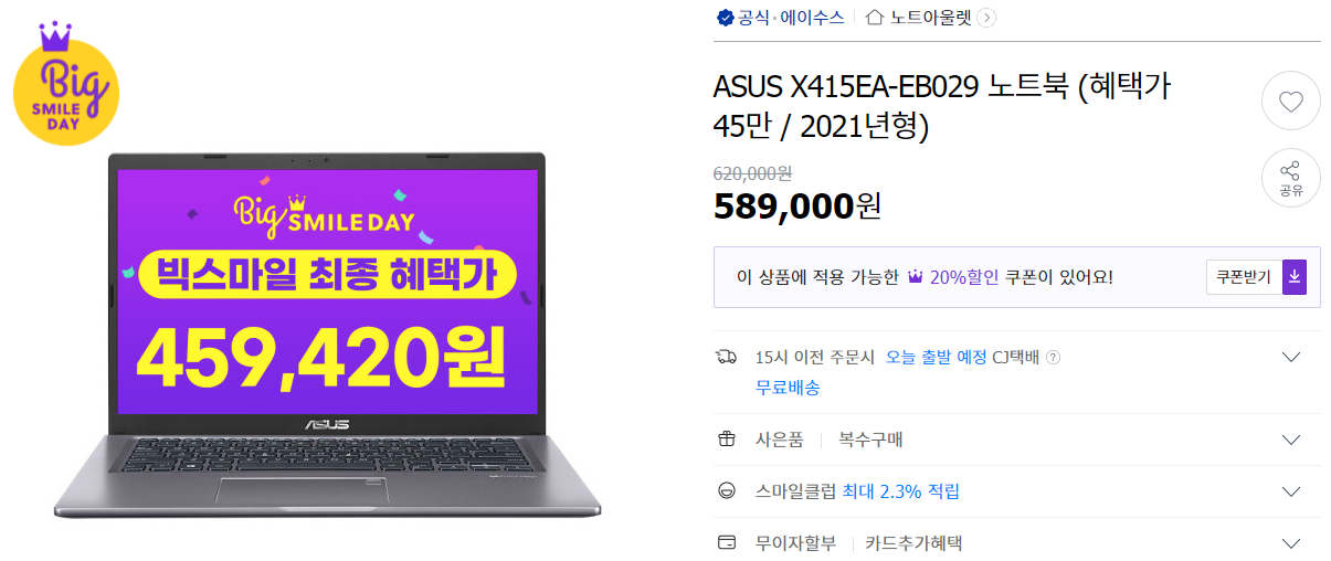 와... 이건 뭔가 싶을 정도로 싸게 나왔네요. 다 필요 없고 단순 문서, 인터넷 서핑 작업만 하고자 한다면 이번 빅스마일 세일에서 가장 가성비 좋은 딜 중 하나인 것 같습니다.
