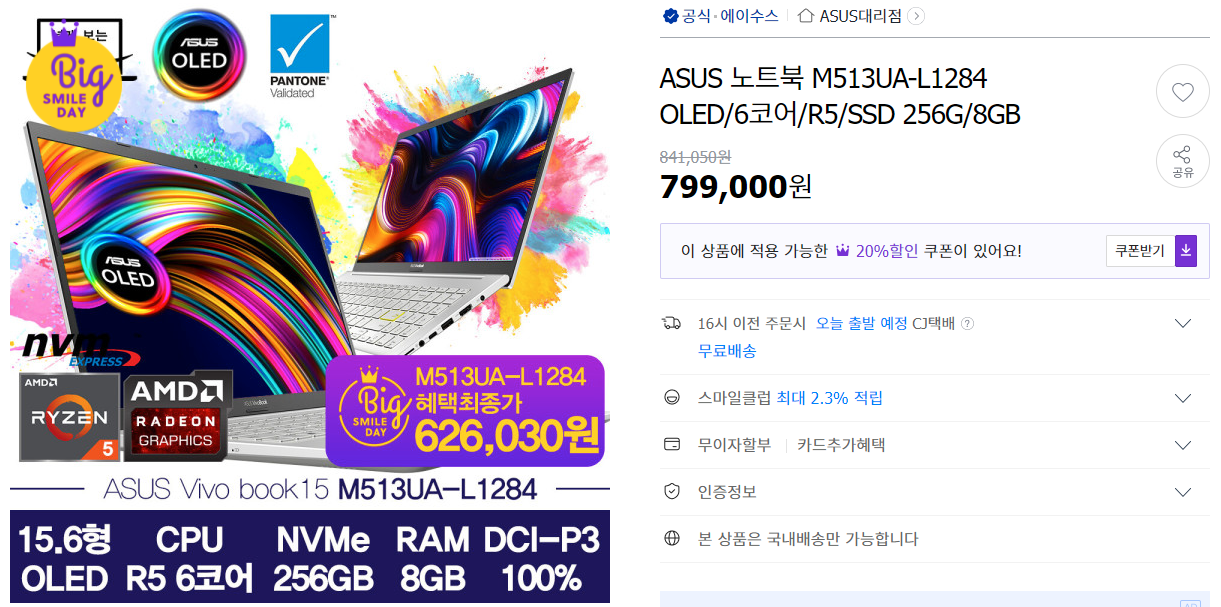 | 에이수스 | 비보북15 M513 | R5-5500U | 8GB 램 | 256GB SSD |